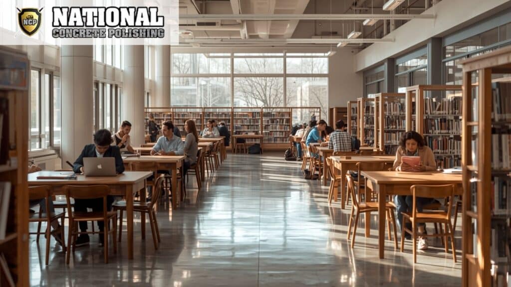 - Exceptional Durability: Polished concrete library flooring withstands heavy foot traffic, book cart movement, and furniture repositioning without showing wear patterns.